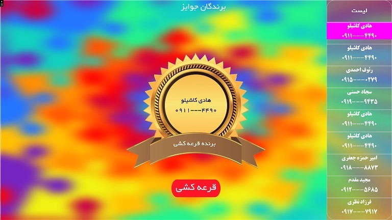 7 . اجرای قرعه کشی بصورت تمام صفحه بصورت خودکار برروی پروژکتور یا مانیتور جهت جذابیت بیشتر